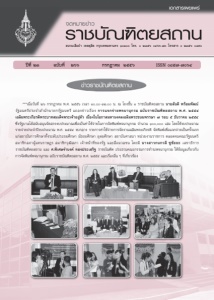 จดหมายข่าว ราชบัณฑิตยสถาน สนามเสือป่า เขตดุสิต กรุงเทพมหานคร ๑๐๓๐๐ โทร. ๐ ๒๓๕๖ ๐๔๖๖-๗๐ โทรสาร ๐ ๒๓๕๖ ๐๔๙๐ เอกสารเผยแพร่ ข่าวราชบัณฑิตยสถาน ปีที่ ๒๓ ฉบับที่ ๒๖๖ กรกฎาคม ๒๕๕๖ ISSN ๐๘๕๗-๗๐๖๔ ***เมื่อวันที่ ๒๖ กรกฎาคม พ.ศ. ๒๕๕๖ เวลา ๑๐.๐๐-๑๒.๐๐ น. ณ โถงชั้น ๑ ราชบัณฑิตยสถาน นายสันติ พร้อมพัฒน์ รัฐมนตรีประจำสำนักนายกรัฐมนตรี แถลงข่าวเรื่อง การแจกจ่ายพจนานุกรม ฉบับราชบัณฑิตยสถาน พ.ศ. ๒๕๕๔ เฉลิมพระเกียรติพระบาทสมเด็จพระเจ้าอยู่หัว เนื่องในโอกาสมหามงคลเฉลิมพระชนมพรรษา ๗ รอบ ๕ ธันวาคม ๒๕๕๔ ซึ่งรัฐบาลได้สนับสนุนจัดสรรงบประมาณเพื่อเป็นค่าใช้จ่ายในการจัดพิมพ์พจนานุกรม จำนวน ๑๐๐,๐๐๐ เล่ม โดยใช้งบประมาณ รายจ่ายประจำปีงบประมาณ พ.ศ. ๒๕๕๔ งบกลาง รายการค่าใช้จ่ายการจัดงานเฉลิมพระเกียรติ จัดพิมพ์เพื่อแจกจ่ายเป็นครั้งแรก แก่สถาบันการศึกษาทั้งระดับประถมศึกษา มัธยมศึกษา อุดมศึกษา สถาบันศาสนา หน่วยงานราชการ ตลอดจนคณะรัฐมนตรี สมาชิกสภาผู้แทนราษฎร สมาชิกวุฒิสภา เจ้าหน้าที่ของรัฐ และสื่อมวลชน โดยมี นางสาวกนกวลี ชูชัยยะ เลขาธิการ ราชบัณฑิตยสถาน และ ศ.พิเศษจำนงค์ ทองประเสริฐ ราชบัณฑิต ประธานคณะกรรมการชำระพจนานุกรม ให้ข้อมูลเกี่ยวกับ การจัดพิมพ์พจนานุกรม ฉบับราชบัณฑิตยสถาน พ.ศ. ๒๕๕๔ และเรื่องอื่น ๆ ที่เกี่ยวข้อง