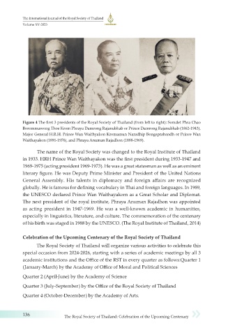 136 The Royal Society of Thailand: Celebration of the Upcoming Centenary
