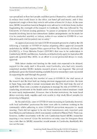 time, MORU researchers based in Bangkok were advised to work from home, further