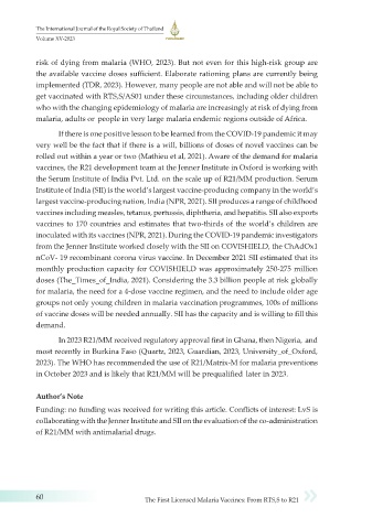 rolled out within a year or two (Mathieu et al, 2021). Aware of the demand for malaria